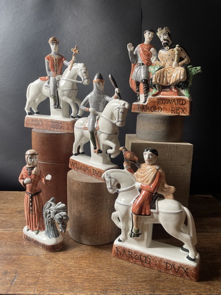 Our Battle of Hastings Collection has been conceived to mirror the narrative style of the Bayeux Tapestry, telling the story of one of the country’s most famous battles through a series of figures and vignettes. The palette is also tightly controlled and focuses on colours similar to those in the Bayeux Tapestry itself, so comprises Chestnut Brown, Russet, soft Charcoal Grey, Dark Green, Coral and Black.