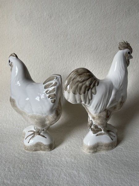 Our striking ceramic Hen & Rooster figures are shown here in London Stone on a crisp white base glaze.