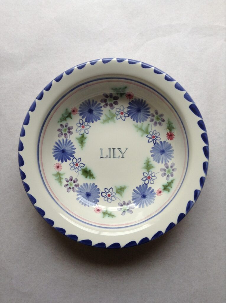 Patterned & Personalised Bowl SINGLE LINE up to ten characters (7 inches in diameter) – £50